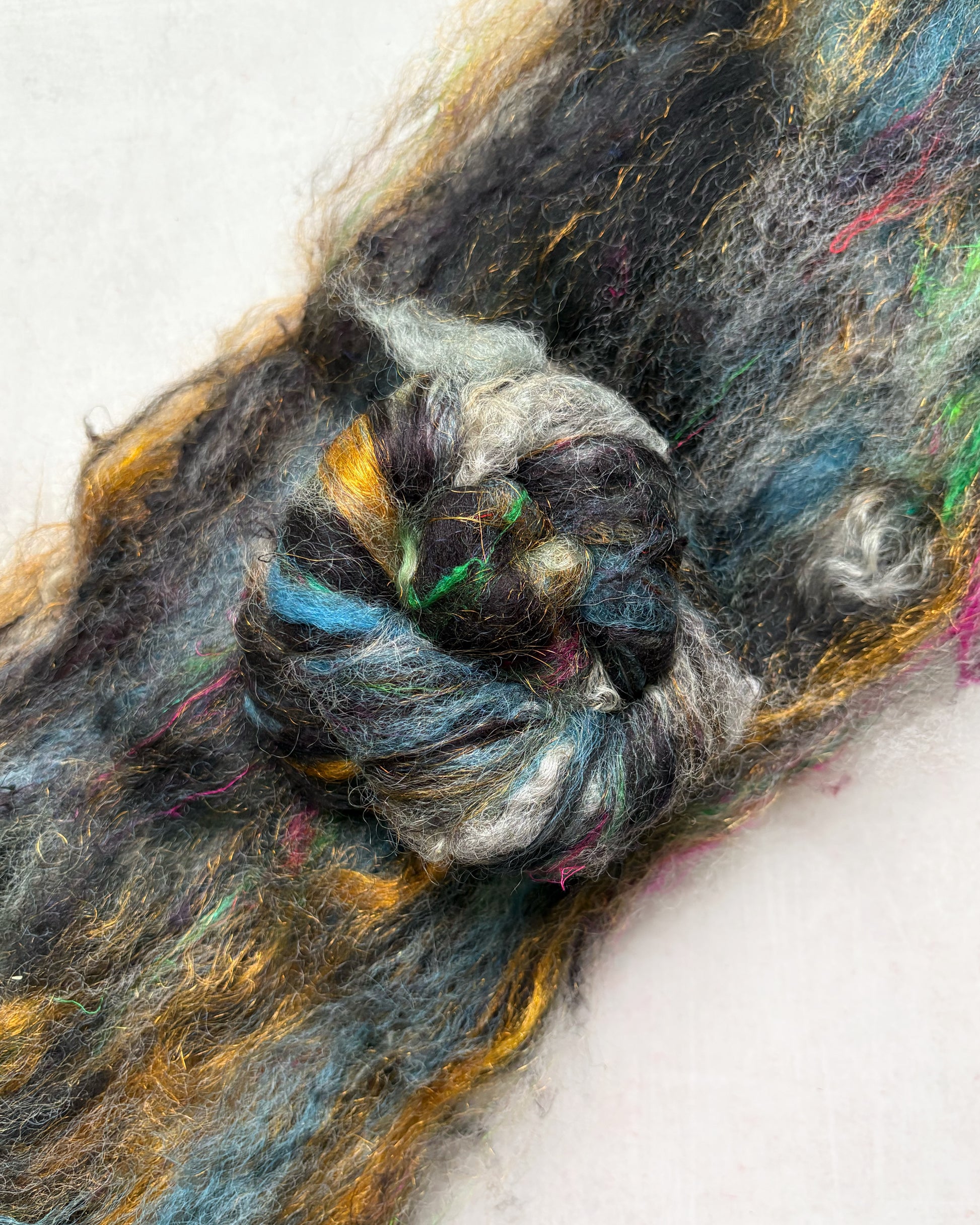 Ingredients: Merino wool, Romney Locks, Firestar, Sari Silk