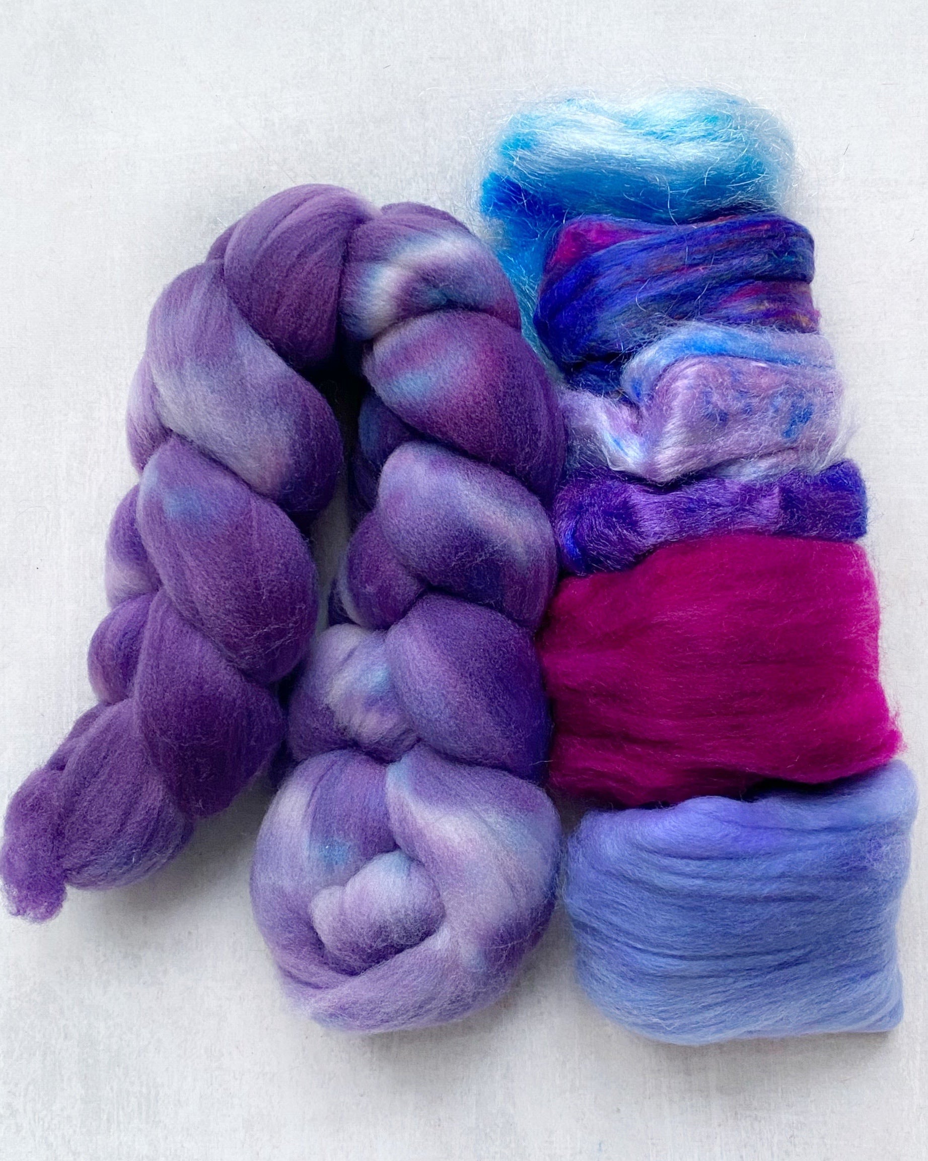 Carding kits provide you with a themed palette of color and texture to make your own creations. These are the same fibers I use when carding batts but don't be limited to batts, these kits can be used on blending boards, for felting, or adding to your stash of carding bits.