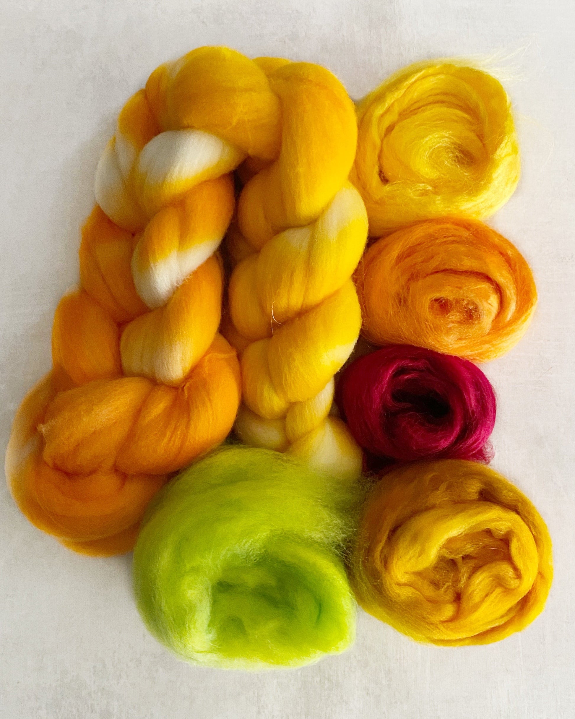 Carding kits provide you with a themed palette of color and texture to make your own creations. These are the same fibers I use when carding batts but don't be limited to batts, these kits can be used on blending boards, for felting, or adding to your stash of carding bits.