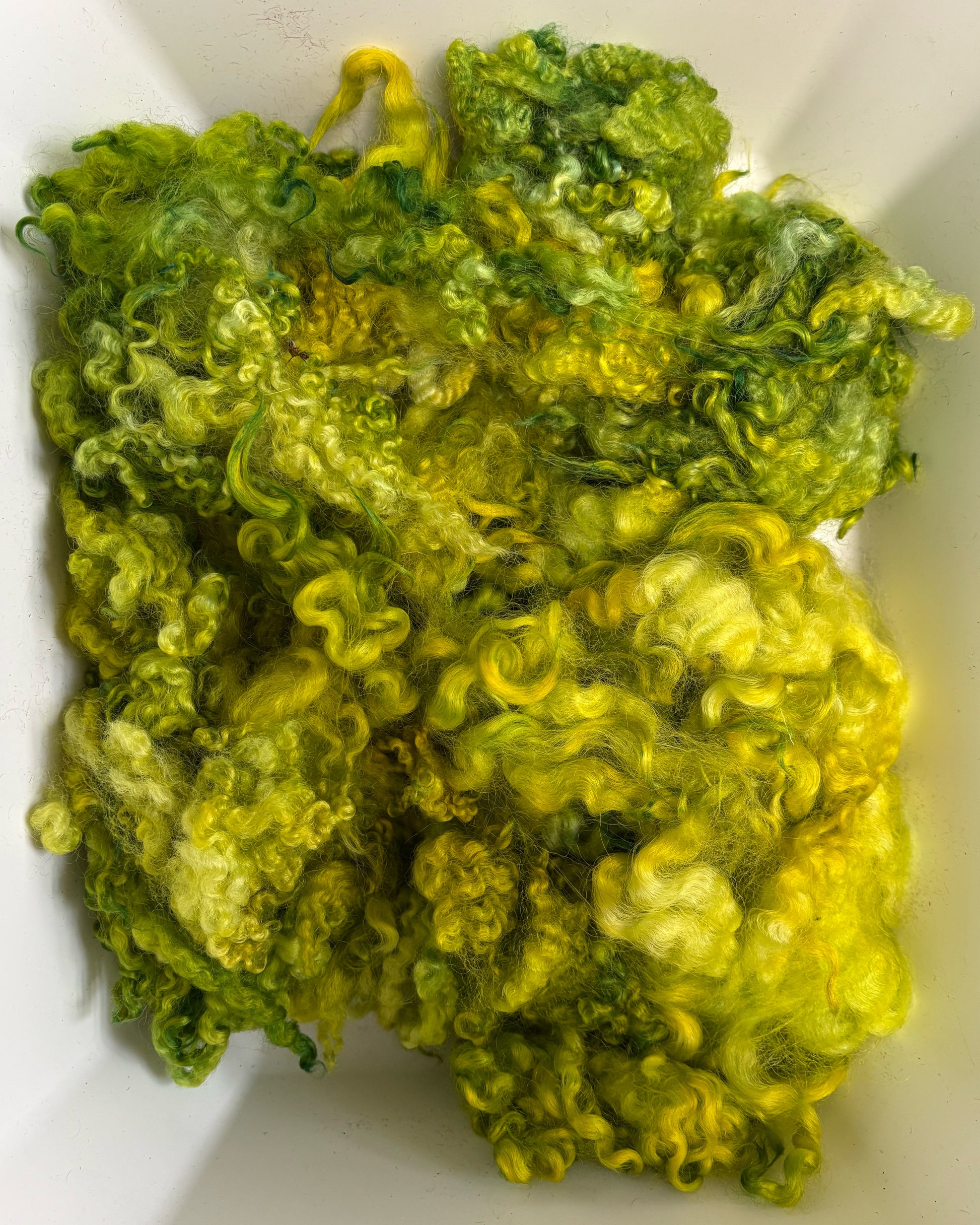 Border Leicester is a versatile longwool with crisp texture and beautiful luster. Washed wool is good for spinning as is, blending with your own fibers, dyeing or felting.