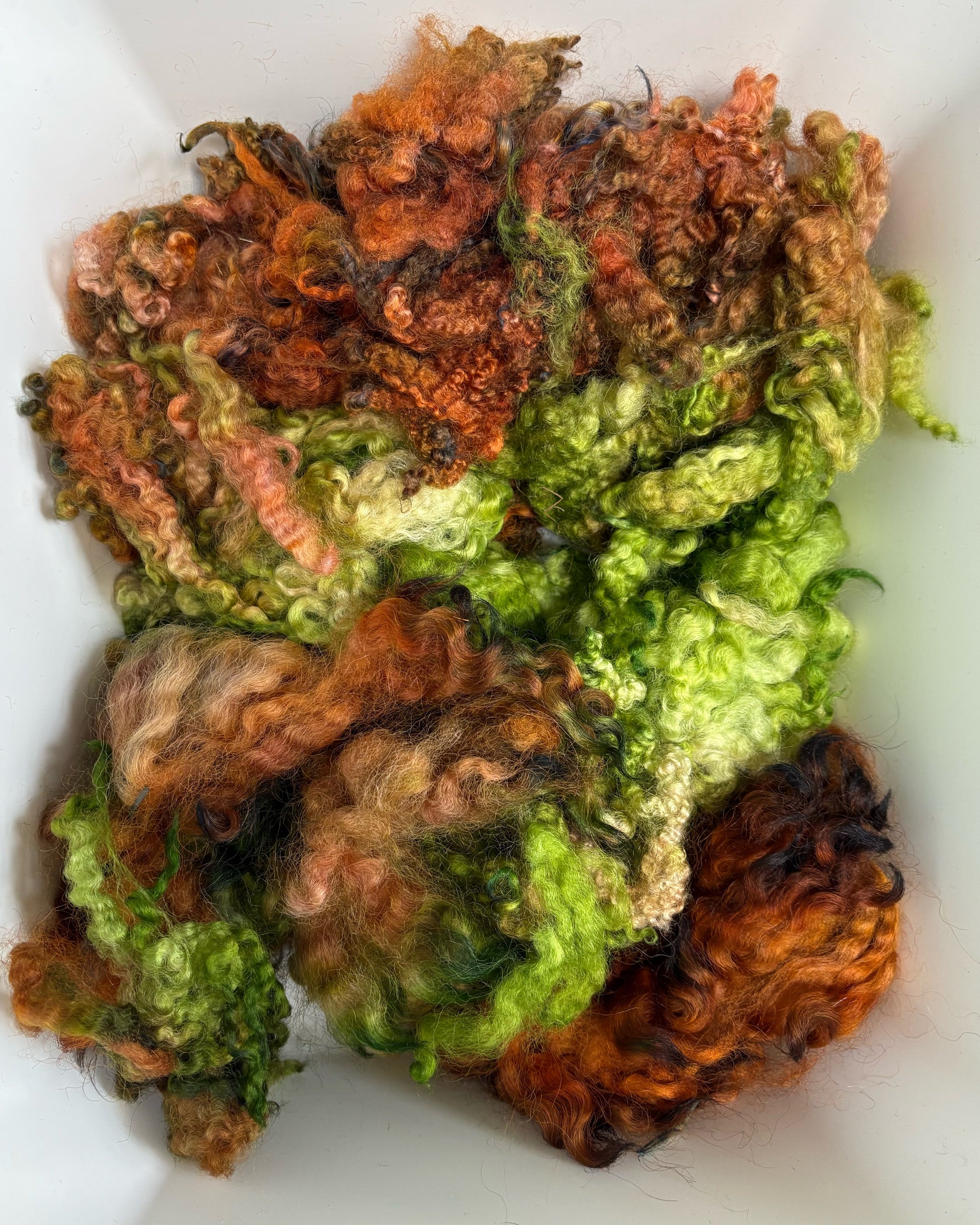 Border Leicester is a versatile longwool with crisp texture and beautiful luster. Washed wool is good for spinning as is, blending with your own fibers, dyeing or felting.