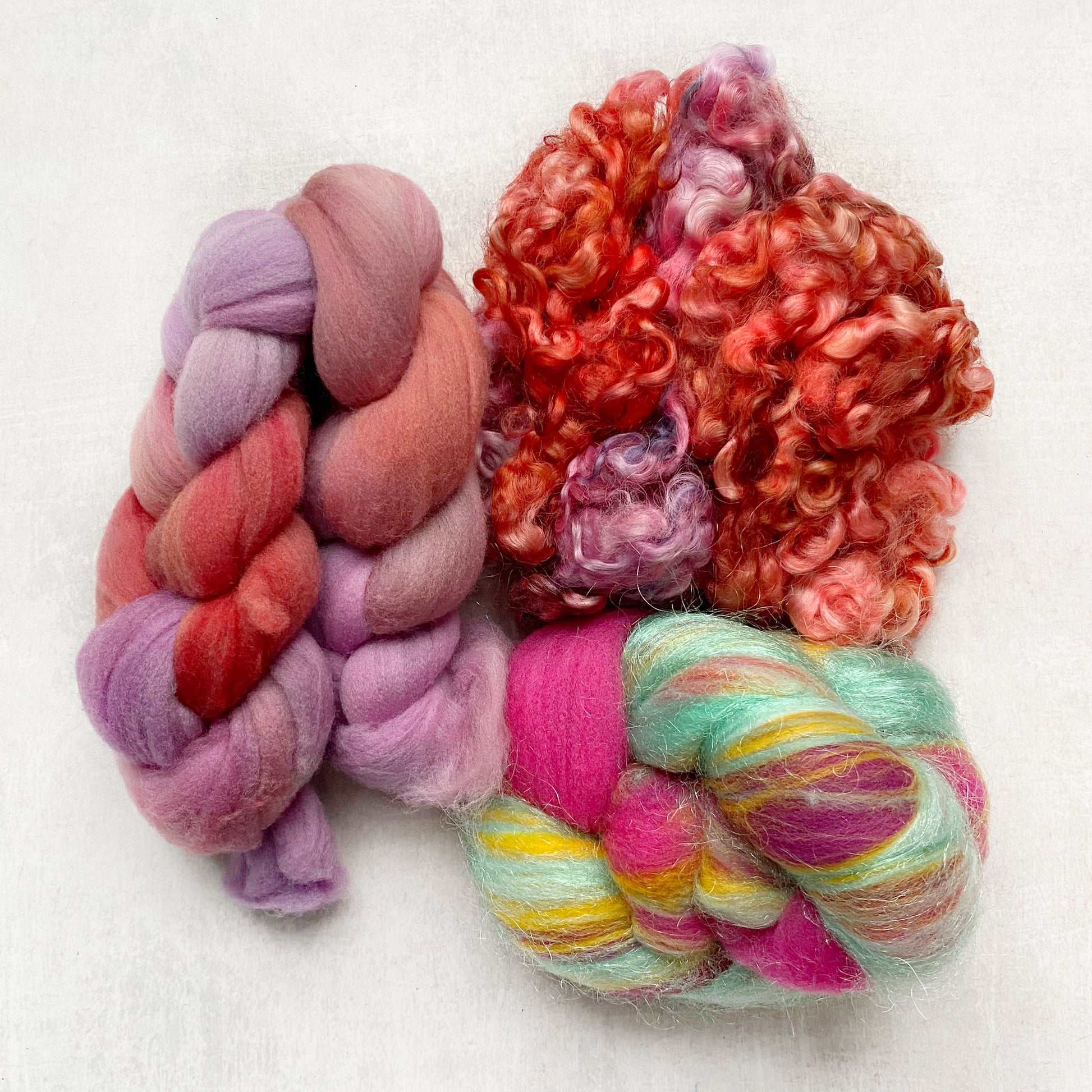 Perfect for felting, weaving, or mixing and matching in your spinning projects, the sampler offers flexibility without the commitment of a full batt or braid. Available in a variety of rich colorways, it also makes a thoughtful gift for fiber-loving friends—or a fun treat for your own studio stash.