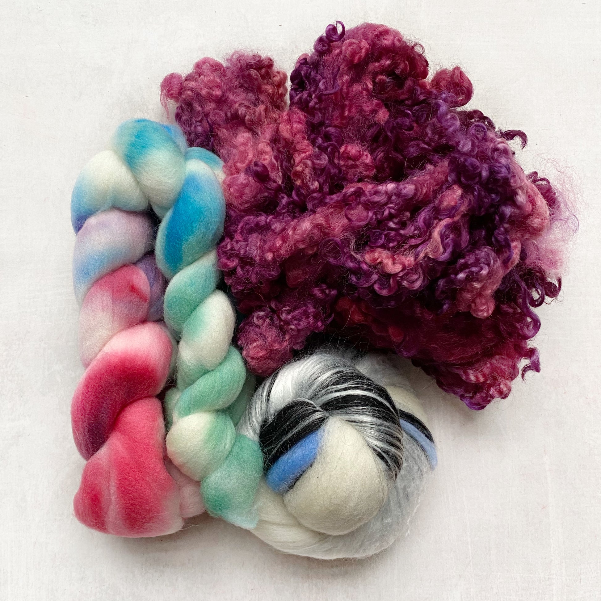 Perfect for felting, weaving, or mixing and matching in your spinning projects, the sampler offers flexibility without the commitment of a full batt or braid. Available in a variety of rich colorways, it also makes a thoughtful gift for fiber-loving friends—or a fun treat for your own studio stash.