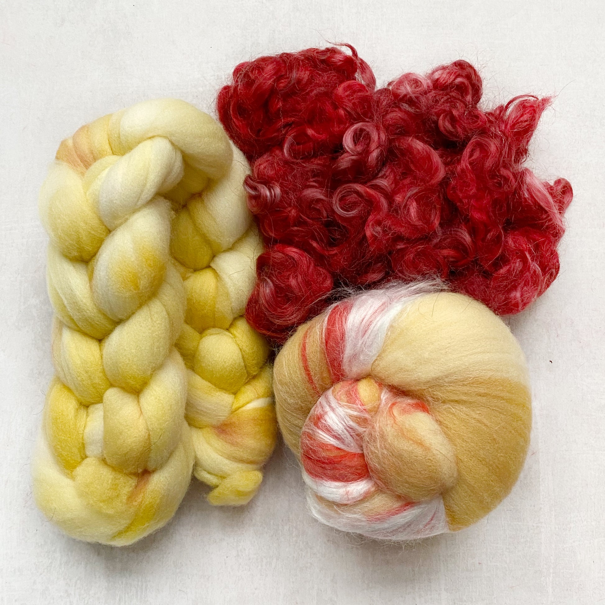 Perfect for felting, weaving, or mixing and matching in your spinning projects, the sampler offers flexibility without the commitment of a full batt or braid. Available in a variety of rich colorways, it also makes a thoughtful gift for fiber-loving friends—or a fun treat for your own studio stash.