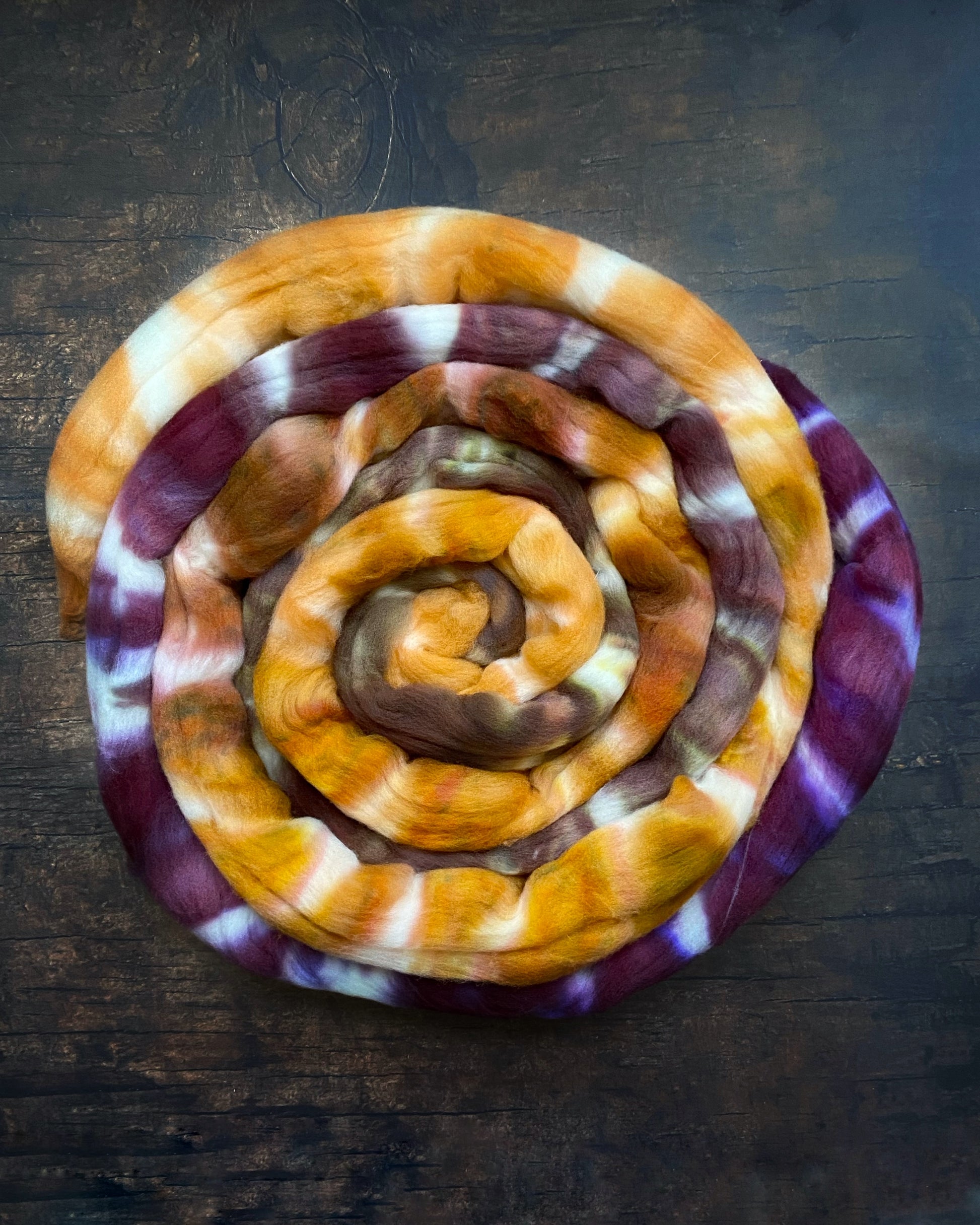 Chocolate Maple Whiskey Cake is a decadent plying pair that spins up like a rich, indulgent dessert infused with warmth and depth. The interplay of deep chocolate hues and golden caramel tones creates a luxurious yarn with a balance of bold and smooth flavors. Whether you’re spinning a velvety single or a dynamic barber pole, this pairing brings all the richness of a well-crafted confection—where every draft reveals layers of color as satisfying as the first bite of a perfectly layered cake.