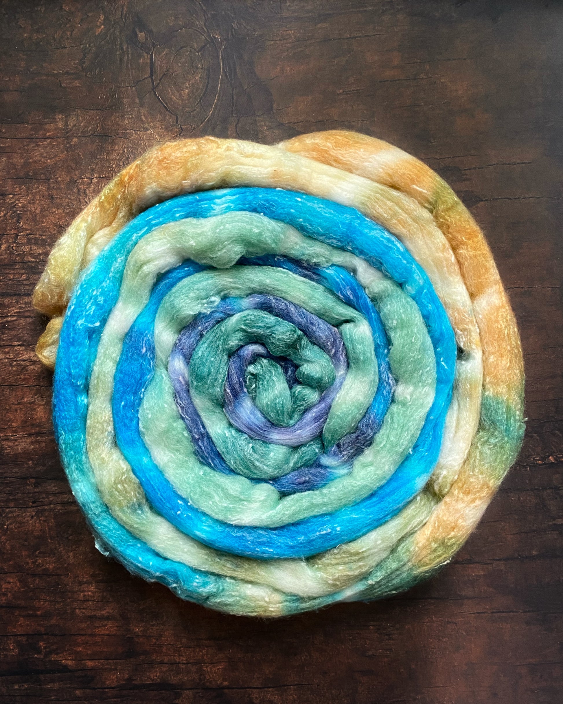 There’s a whisper on the wind, a pull in the tide, a promise just beyond the reef. It Calls Me is for the spinners who crave movement, flow, and freedom. This plying pair is inspired by that quiet longing to set sail—blending shoreline stillness with oceanic depth. Soft, shimmery, and fluid in the hand, it spins like waves meeting sand: gentle, persistent, full of possibility.