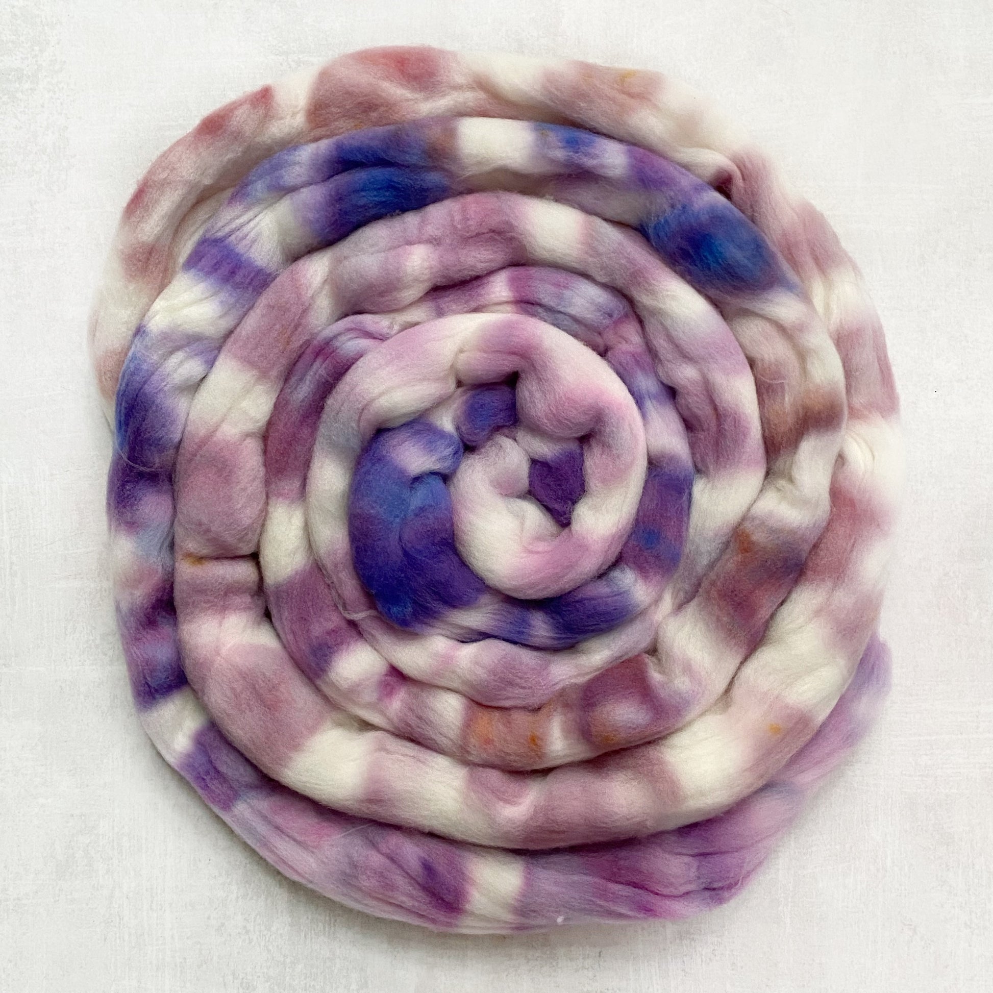 The first braid glides from blushing rose sorbet to sugared plum swirl, evoking the soft pink hues of a perfectly crafted frozen drink kissed by the setting sun. The second braid is a delicate blend of candied rose petals, lavender crème, and violet-infused berry syrup, a playful mix of floral and fruity tones that create a rich, dynamic texture when spun. Together, these braids capture the feeling of a breezy, sun-drenched afternoon—effortlessly elegant and refreshingly delightful.