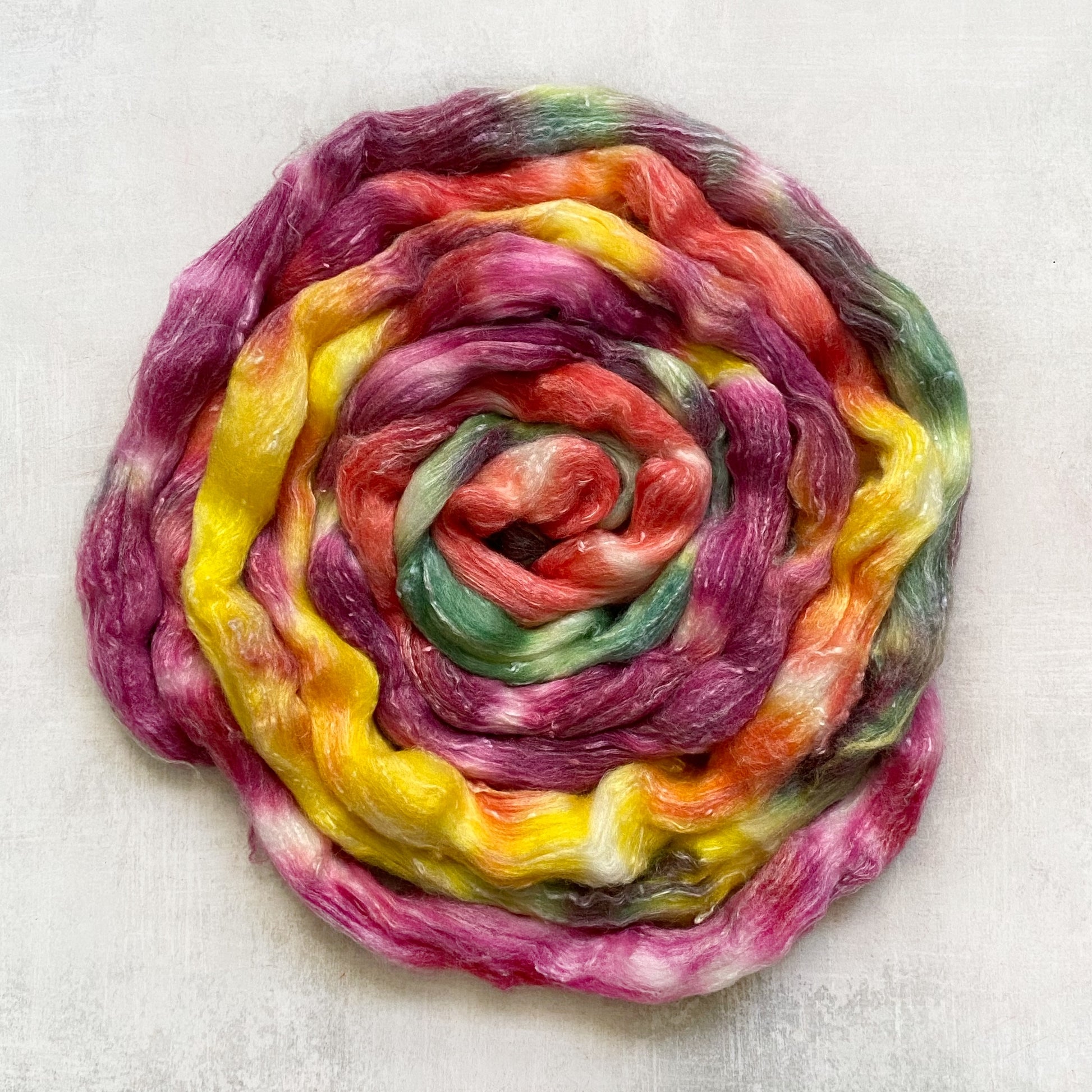 A pair of 2oz rovings designed to be spun and plied together inspired by the graffiti in the Ms. Marvel series.
