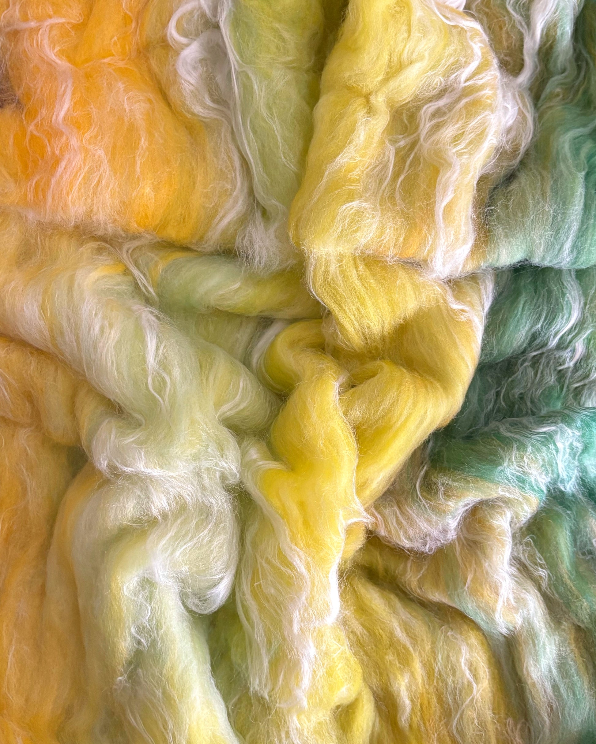 Crafted on a variety of wool bases, from lofty to sleek, Reflections Batts are designed to balance texture with spinability. They’re soft, versatile, and gently carded to preserve loft while offering enough structure to spin smooth singles or expressive textures. Whether you’re building color-shifting skeins or felting painterly surfaces, these batts offer calm, clarity, and a quiet spark of inspiration—like sunlight glancing off still water, ready to ripple outward.