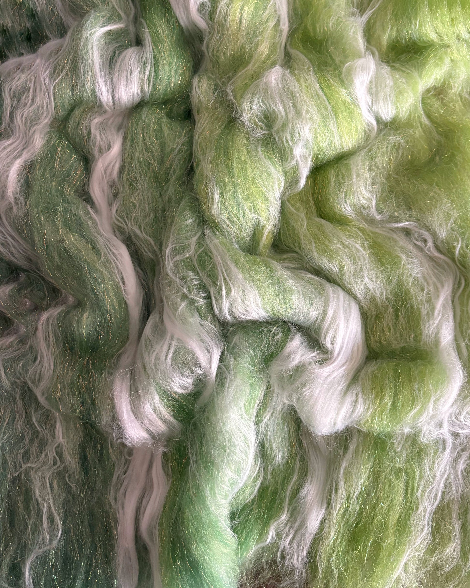 Crafted on a variety of wool bases, from lofty to sleek, Reflections Batts are designed to balance texture with spinability. They’re soft, versatile, and gently carded to preserve loft while offering enough structure to spin smooth singles or expressive textures. Whether you’re building color-shifting skeins or felting painterly surfaces, these batts offer calm, clarity, and a quiet spark of inspiration—like sunlight glancing off still water, ready to ripple outward.