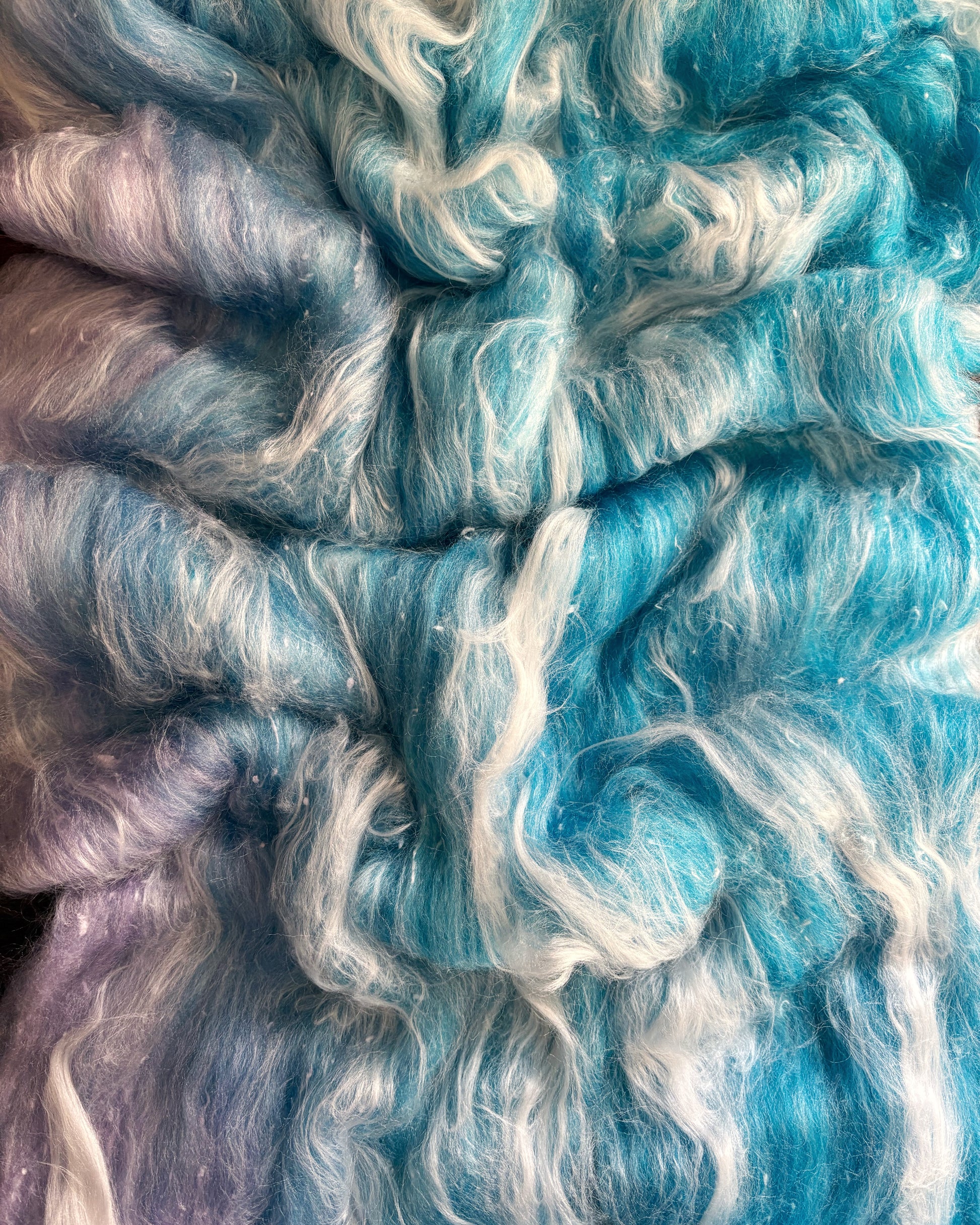 Crafted on a variety of wool bases for versatility and texture, this batt offers an inviting blend of softness and strength. Whether you’re spinning smooth, colorful yarns or felting layers of artistic depth, the Reflections Batt inspires creativity with every fiber. Perfect for those seeking to transform fiber into art, this batt brings a sense of calm, beauty, and inspiration to your next masterpiece.