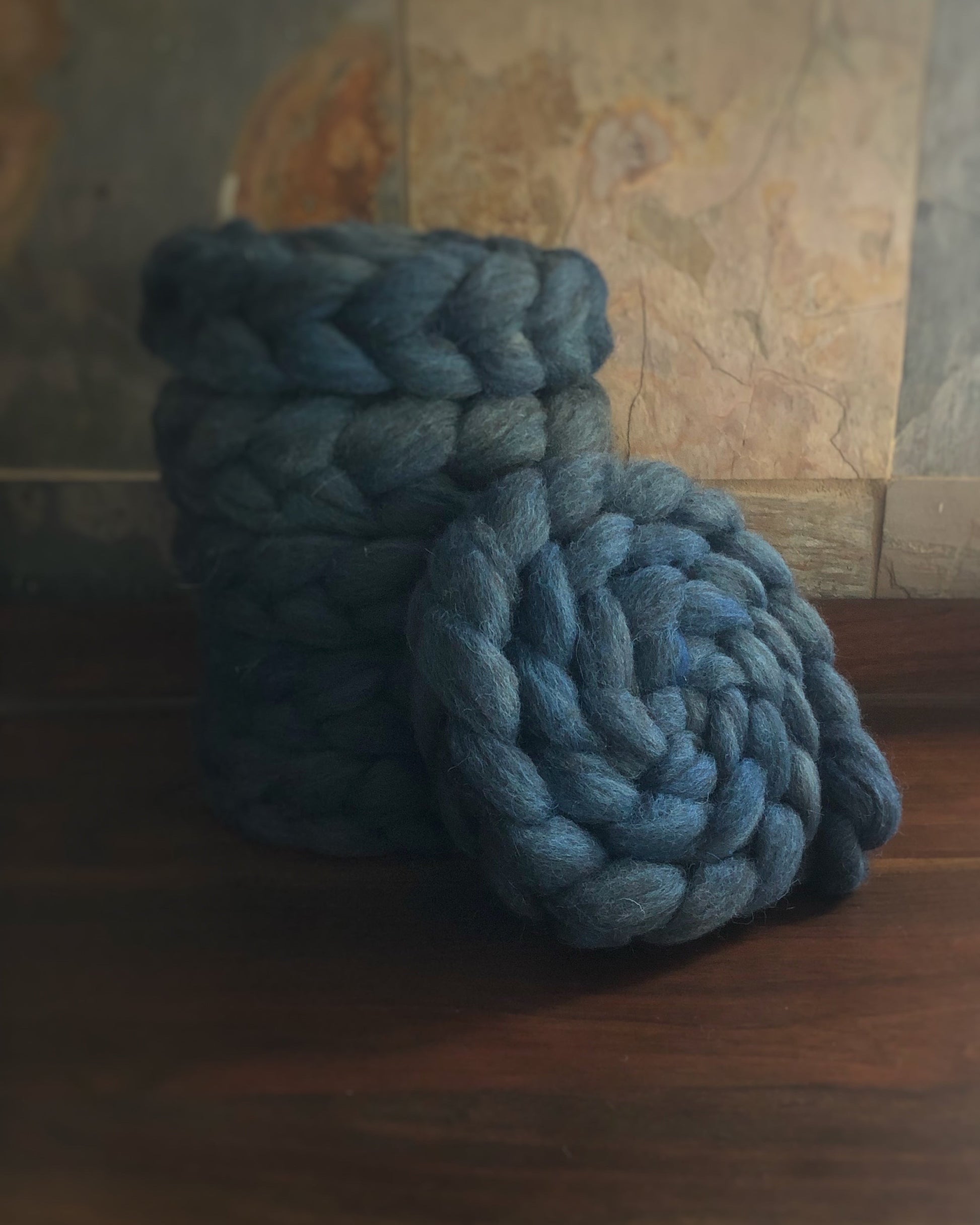 Discover the brilliance of winter’s icy beauty with Marin, a Glacial Spark blue roving that captures the crisp energy of frozen landscapes. Over-dyed on a dark grey wool sliver, this 4-ounce roving shimmers with a vibrant, frosty blue that feels as fresh as a snow-dusted morning. Made from American wool sourced from a wool pool, Marin celebrates the artistry of fiber while supporting local farming communities.