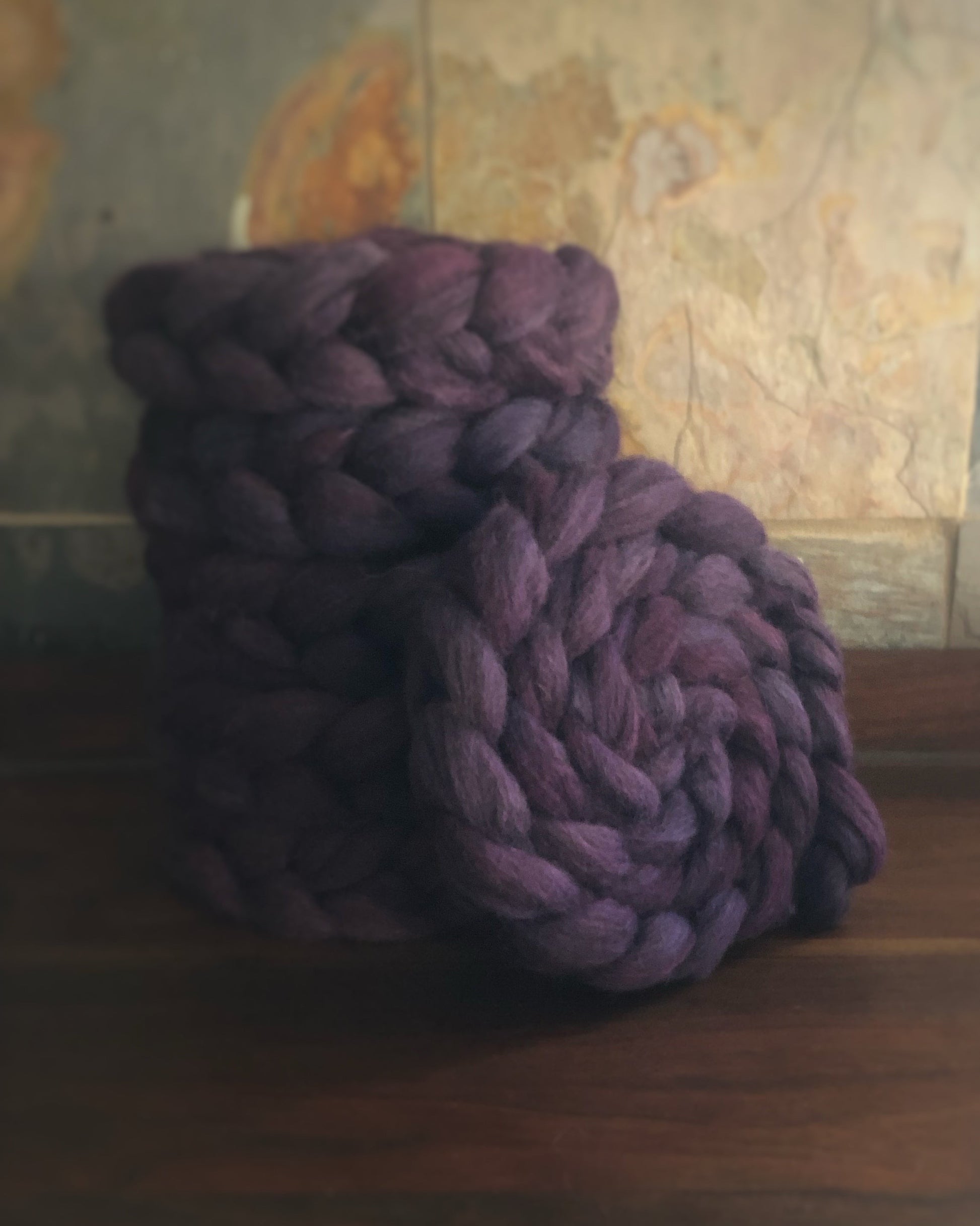 Wrap yourself in the regal mystery of winter with Sophria, a Winter Wisteria purple roving that captures the elegance of frost-kissed florals. This 4-ounce wool sliver, over-dyed on a dark grey base, blends rich, velvety purples with a soft depth, creating a colorway that feels both rich and grounded. Made from American wool sourced from a wool pool, Sophria embodies the commitment to quality and sustainability that defines the Midwinter Collection.